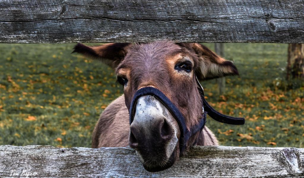 Обои Любопытный осел в загородке