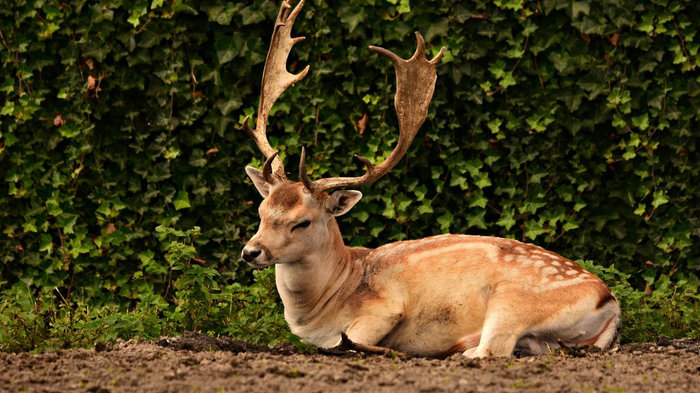Обои Самец лани с большими ветвистыми рогами