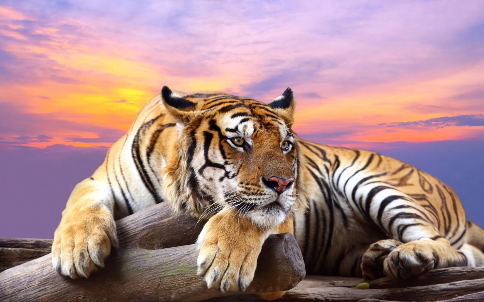 Обои Большой тигр на фоне красивого неба