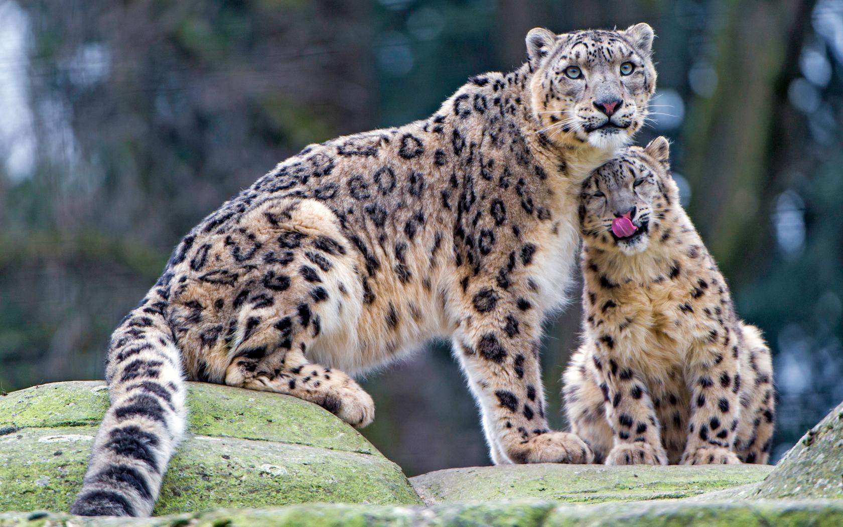 Обои Большой снежный барс с детенышем