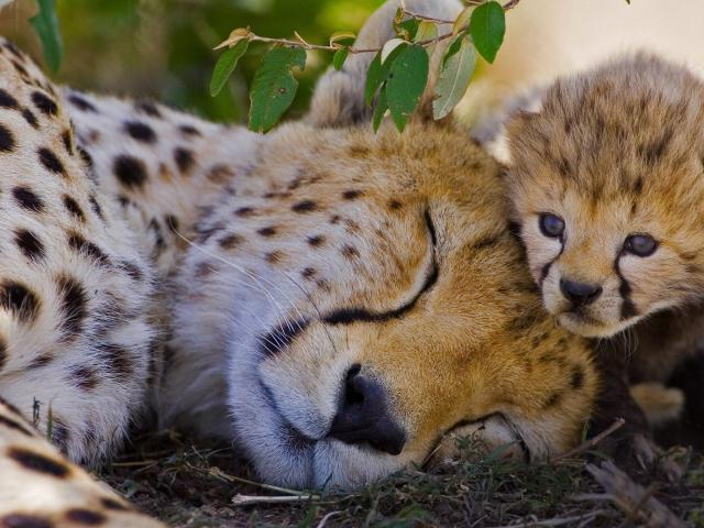 Обои Спящий гепард с детенышем