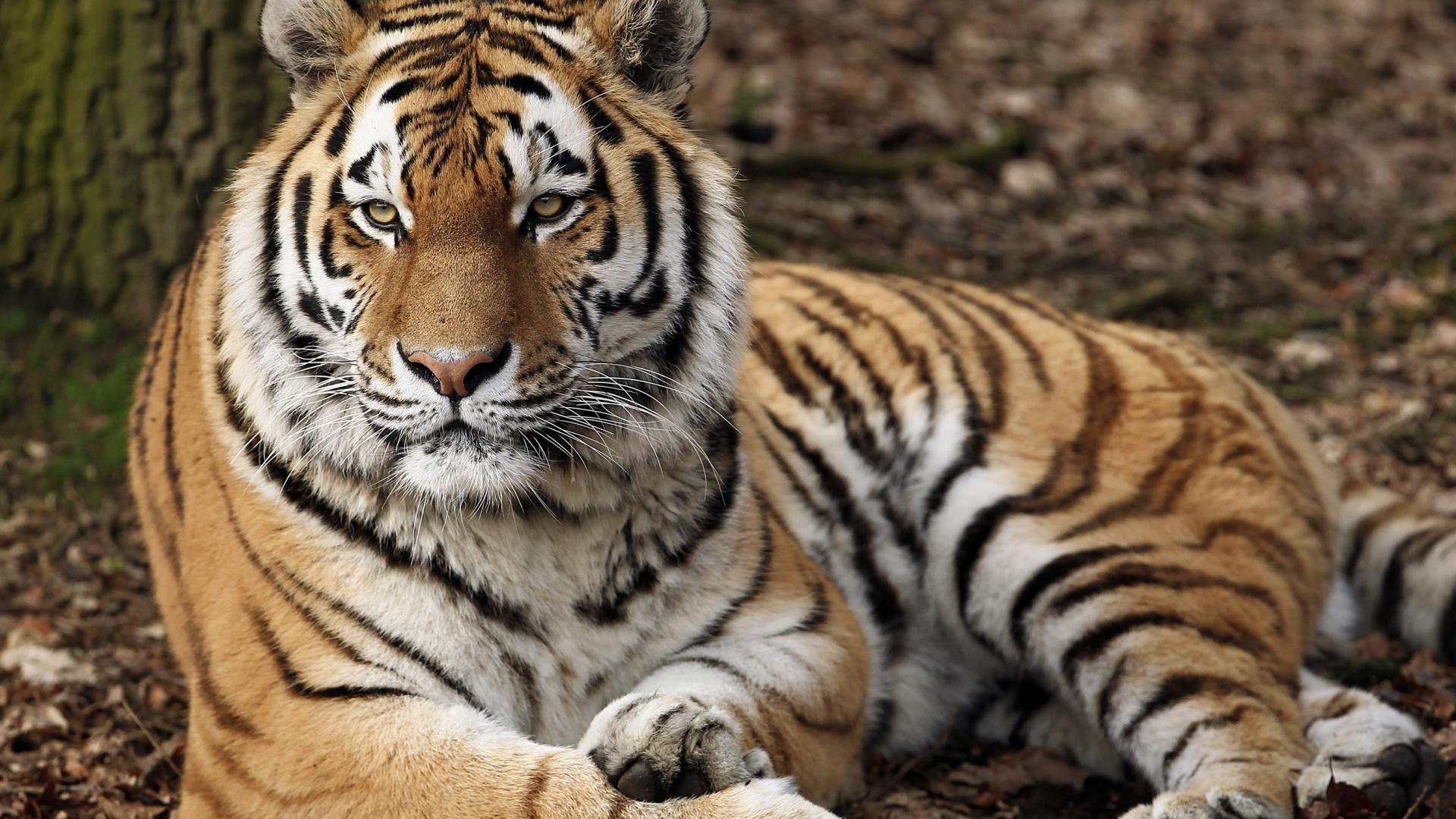 Обои Строгий взгляд большого полосатого тигра