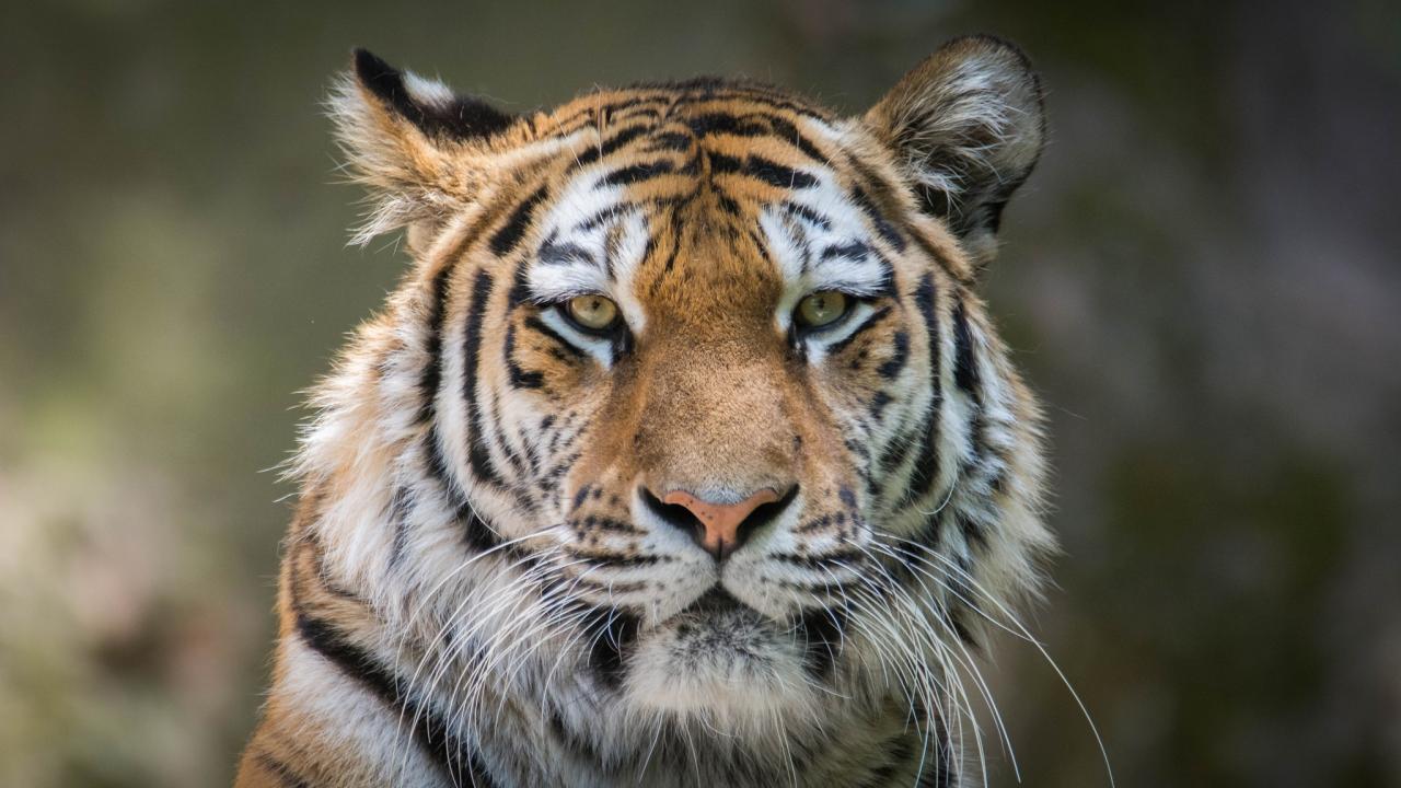 Обои Морда большого серьезного тигра крупным планом