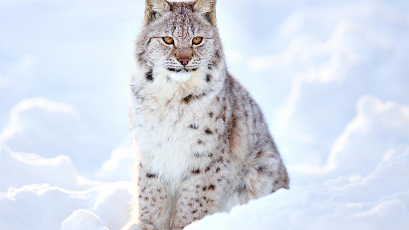 Обои Большая красивая рысь сидит на снегу
