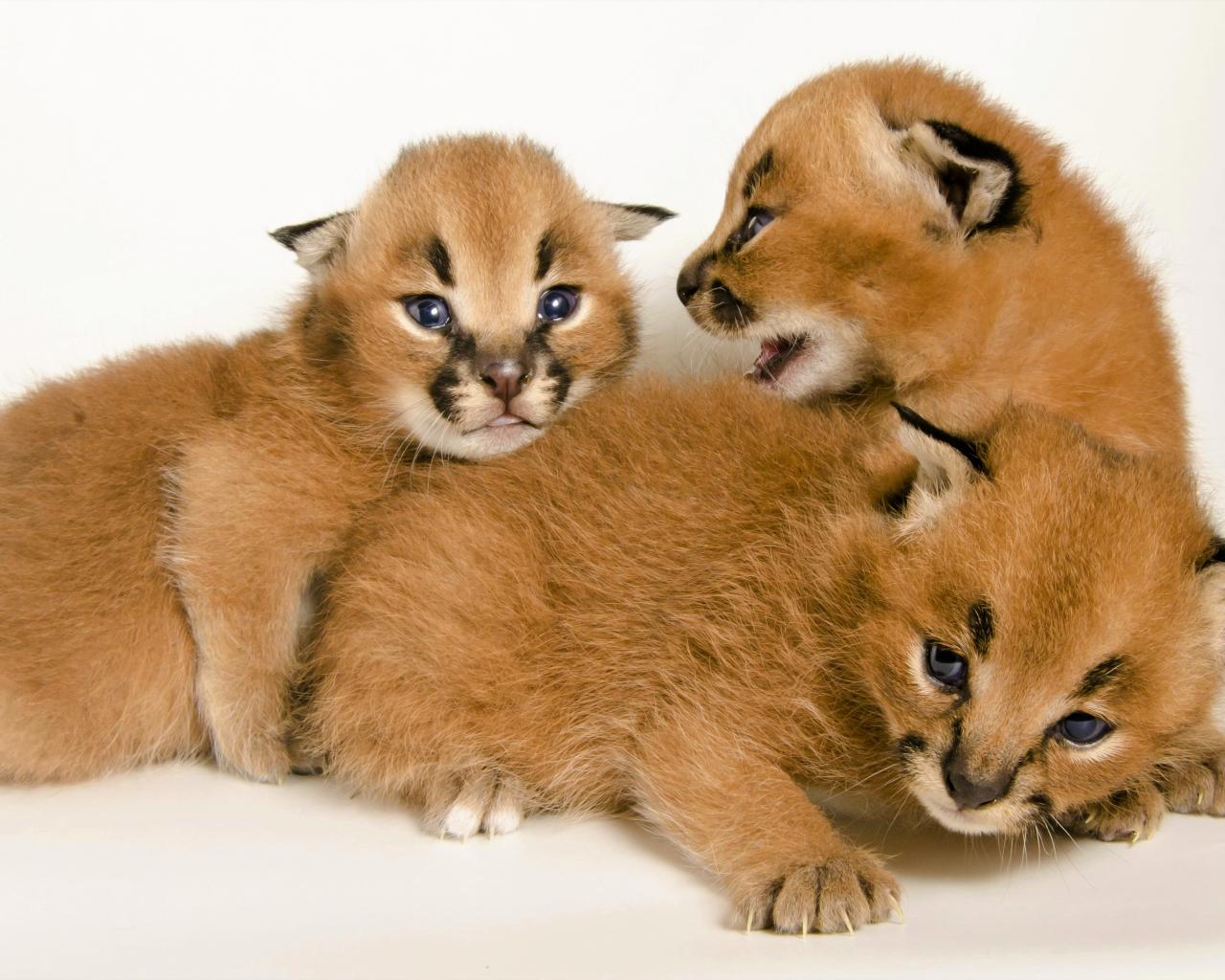 Обои Милые маленькие детеныши каракала на белом фоне