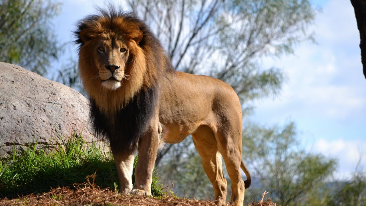 Обои Большой грациозный лев у камня