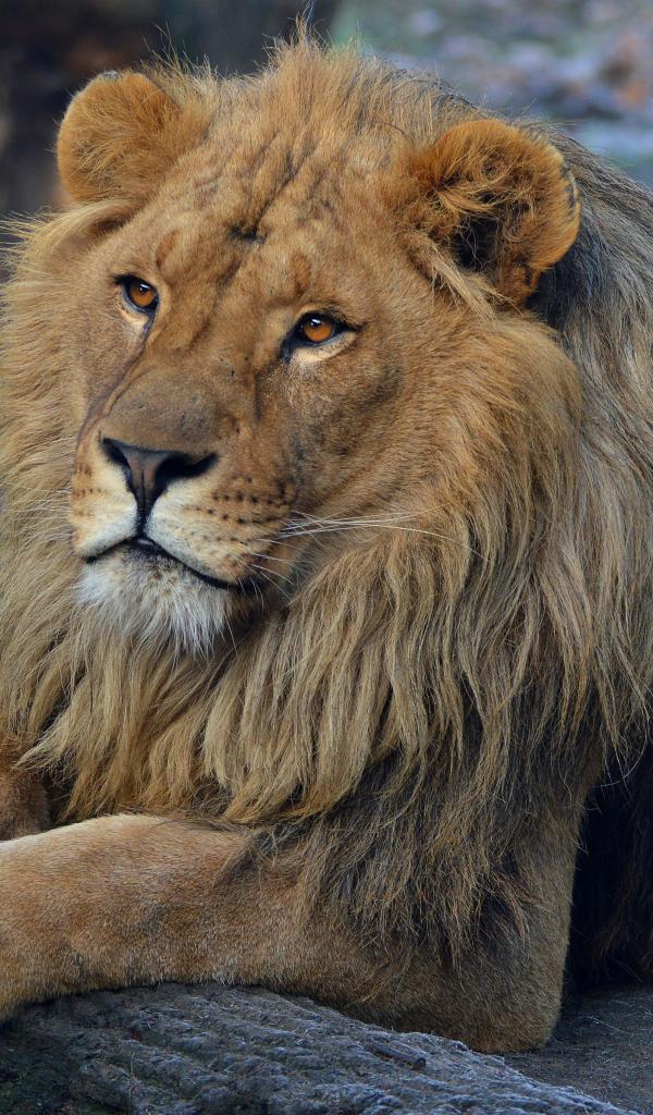 Обои Большой красивый лев в зоопарке