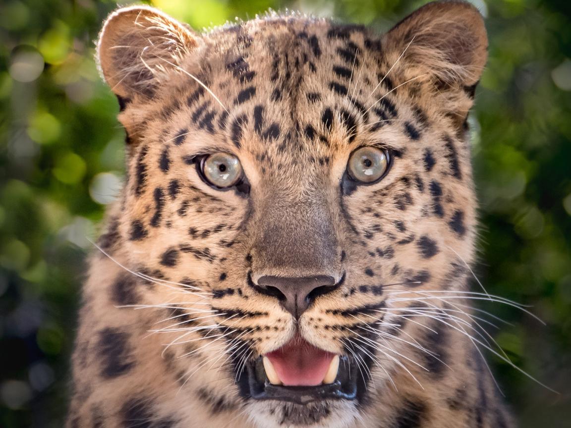 Обои Пятнистый леопард с открытой пастью