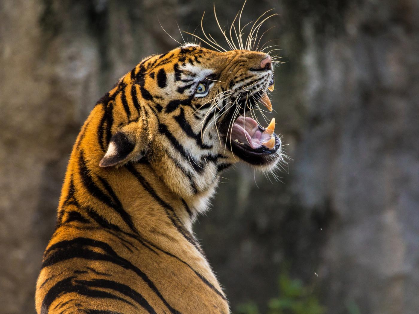 Обои Большой тигр с грозным оскалом