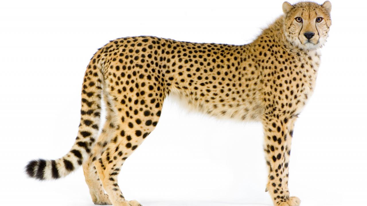 Обои Большой пятнистый леопард на белом фоне
