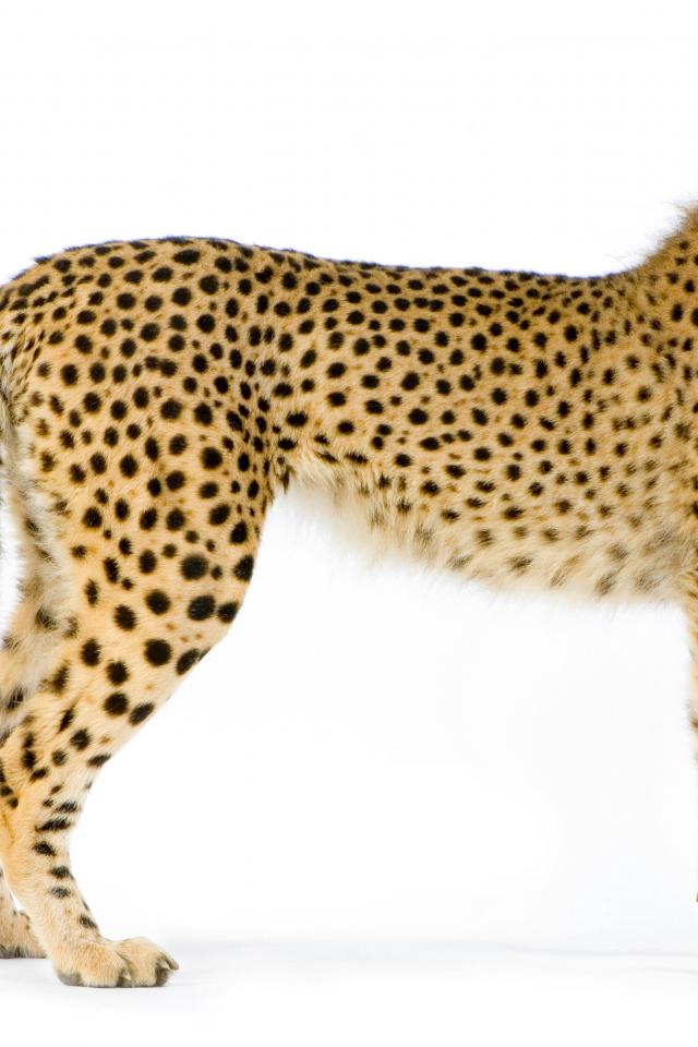 Обои Большой пятнистый леопард на белом фоне