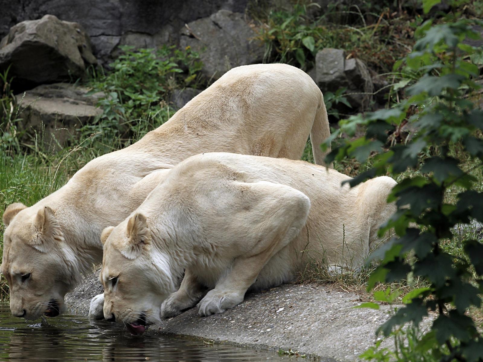 Обои Фантастический неоновый тигр с зелеными глазами у водопоя