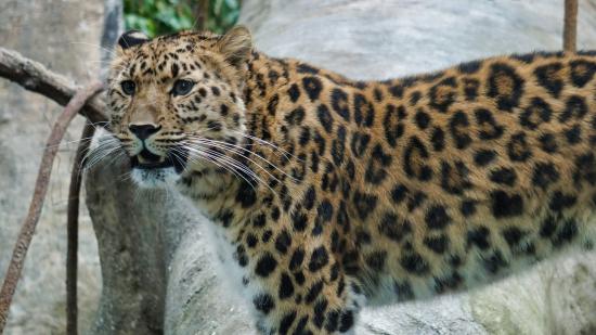 Обои Красивый пятнистый голубоглазый леопард