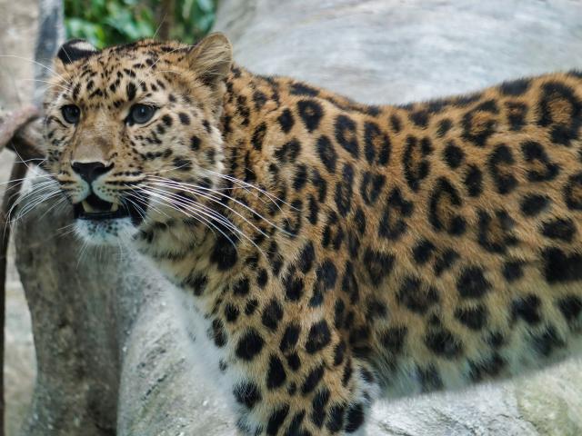 Обои Красивый пятнистый голубоглазый леопард