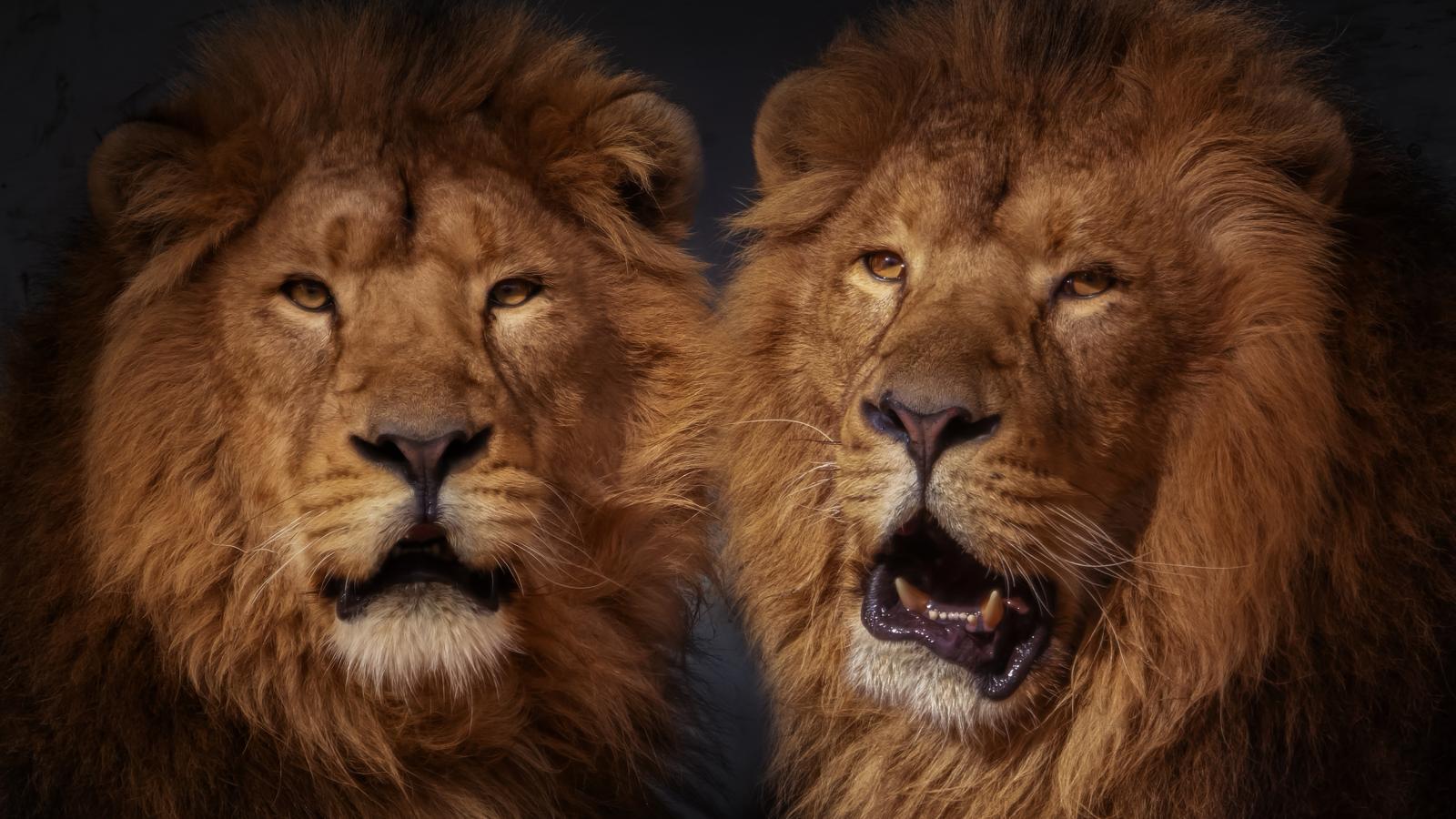 Обои Два белых пушистых щенка самоедской лайки на голубом фоне