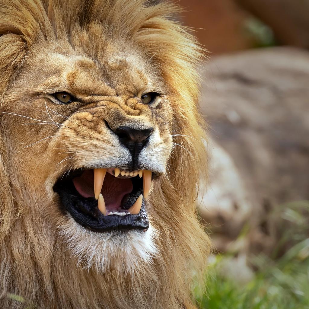 Обои Острые клыки у грозного льва