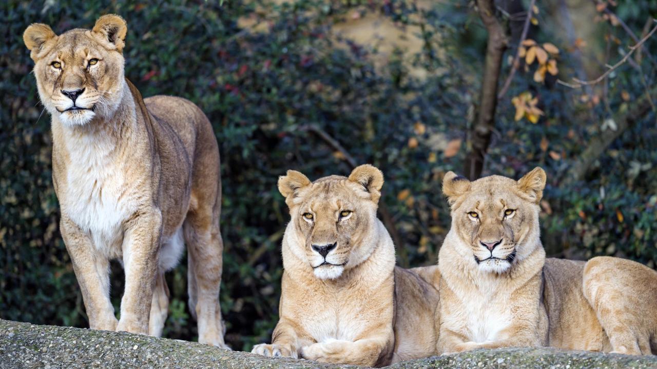 Обои Три величественные львицы отдыхают на солнце