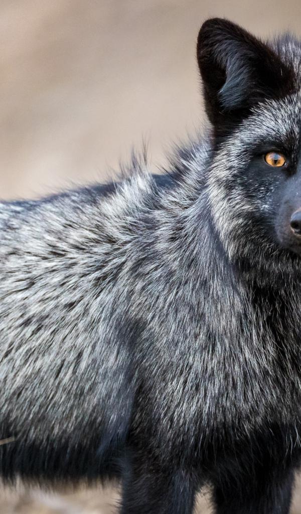 Обои Красивая лиса чернобурка с желтыми глазами