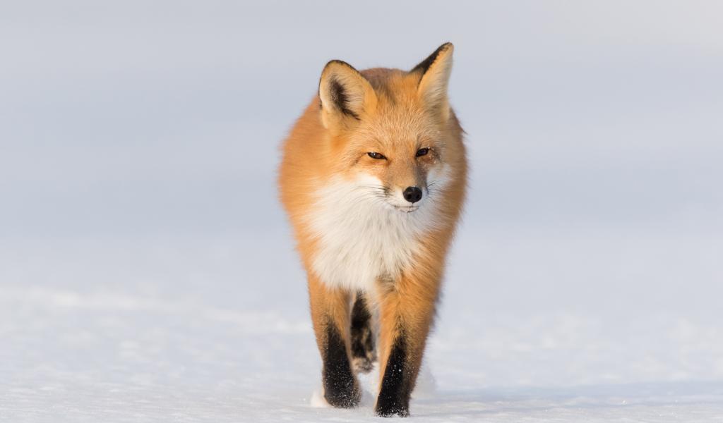 Обои Хитрая рыжая лиса идет по холодному снегу
