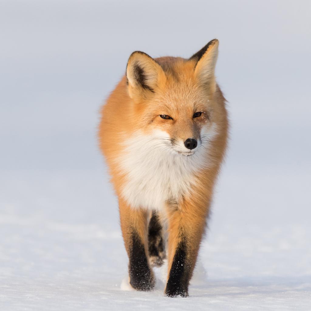 Обои Хитрая рыжая лиса идет по холодному снегу