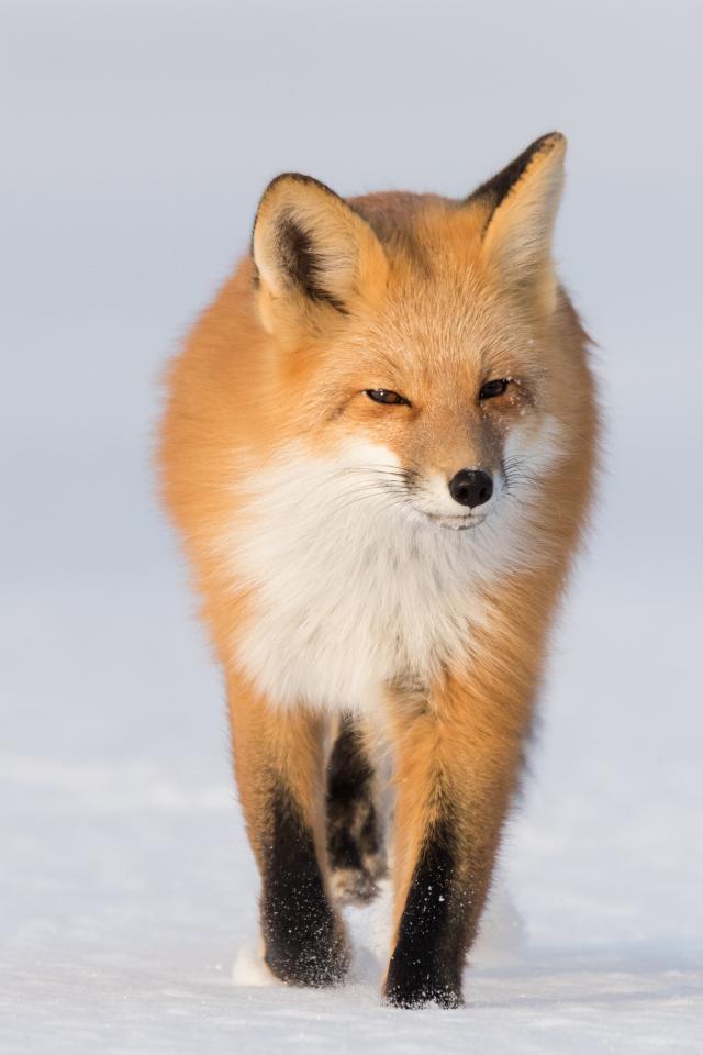 Обои Хитрая рыжая лиса идет по холодному снегу