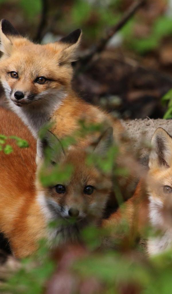Обои Четыре маленьких лисенка в лесу