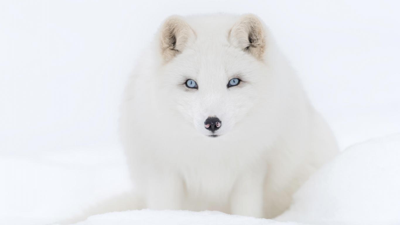Обои Большой голубоглазый белый песец на снегу