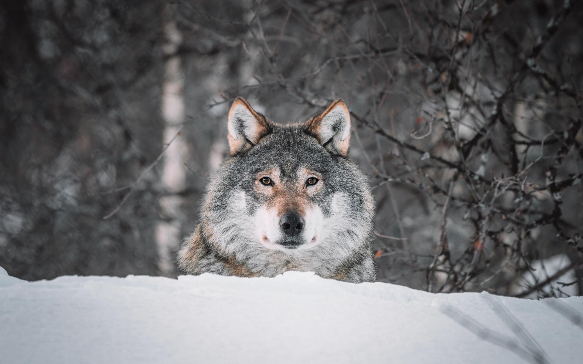 Обои Большой серый волк сидит на снегу