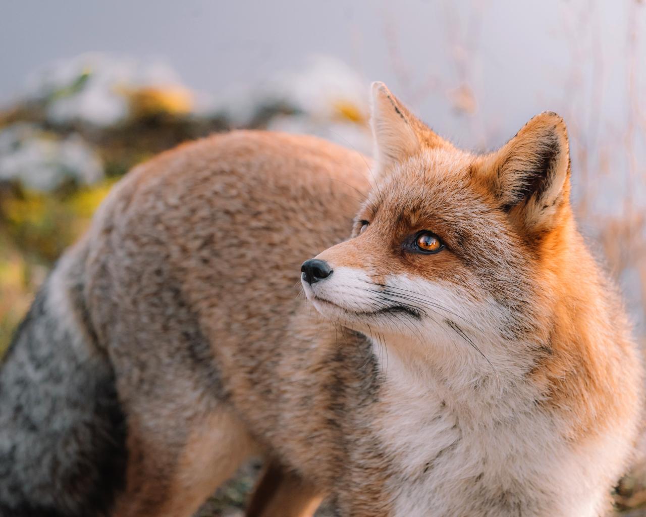 Обои Рыжая хитрая лиса с пушистым хвостом