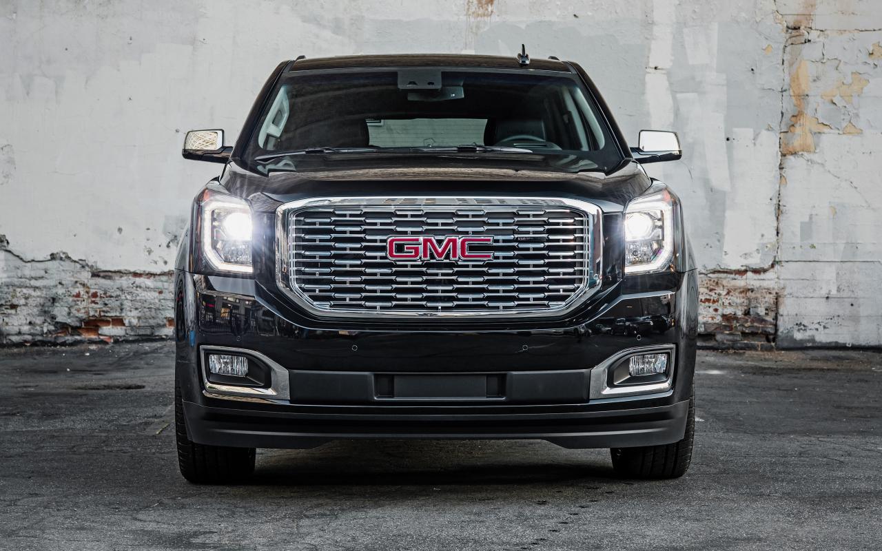 Обои Черный автомобиль GMC Yukon Denali Ultimate, 2018 вид спереди