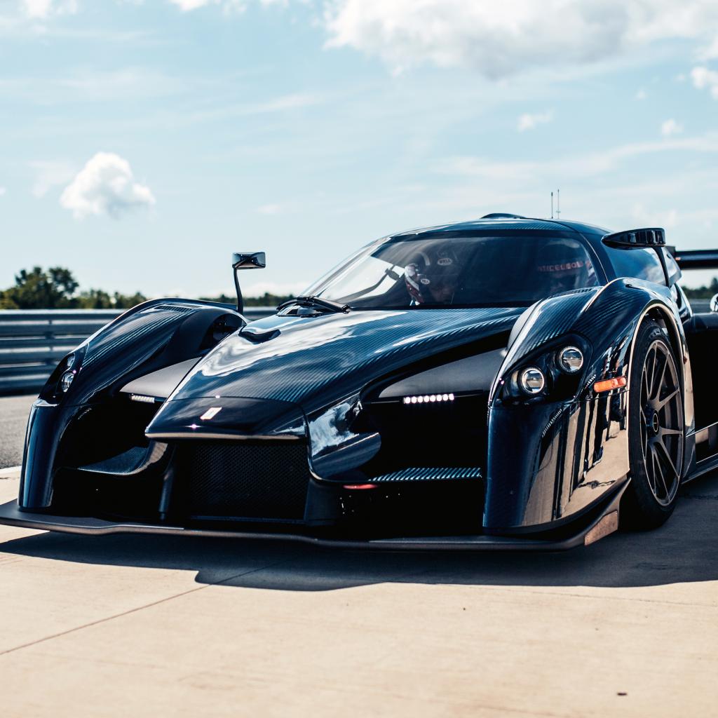 Обои Черный быстрый спортивный автомобиль SCG 003CS на фоне голубого неба