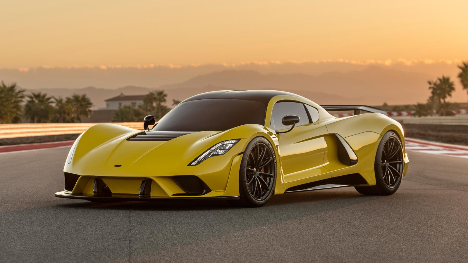 Обои Желтый спортивный автомобиль Hennessey Venom F5, 2019