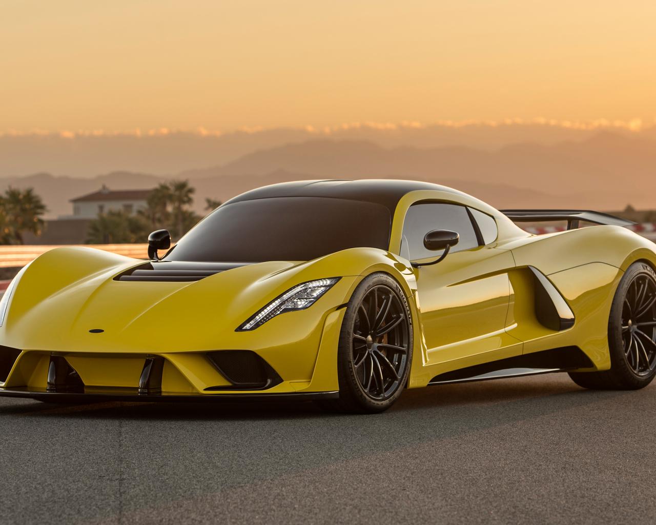 Обои Желтый спортивный автомобиль Hennessey Venom F5, 2019