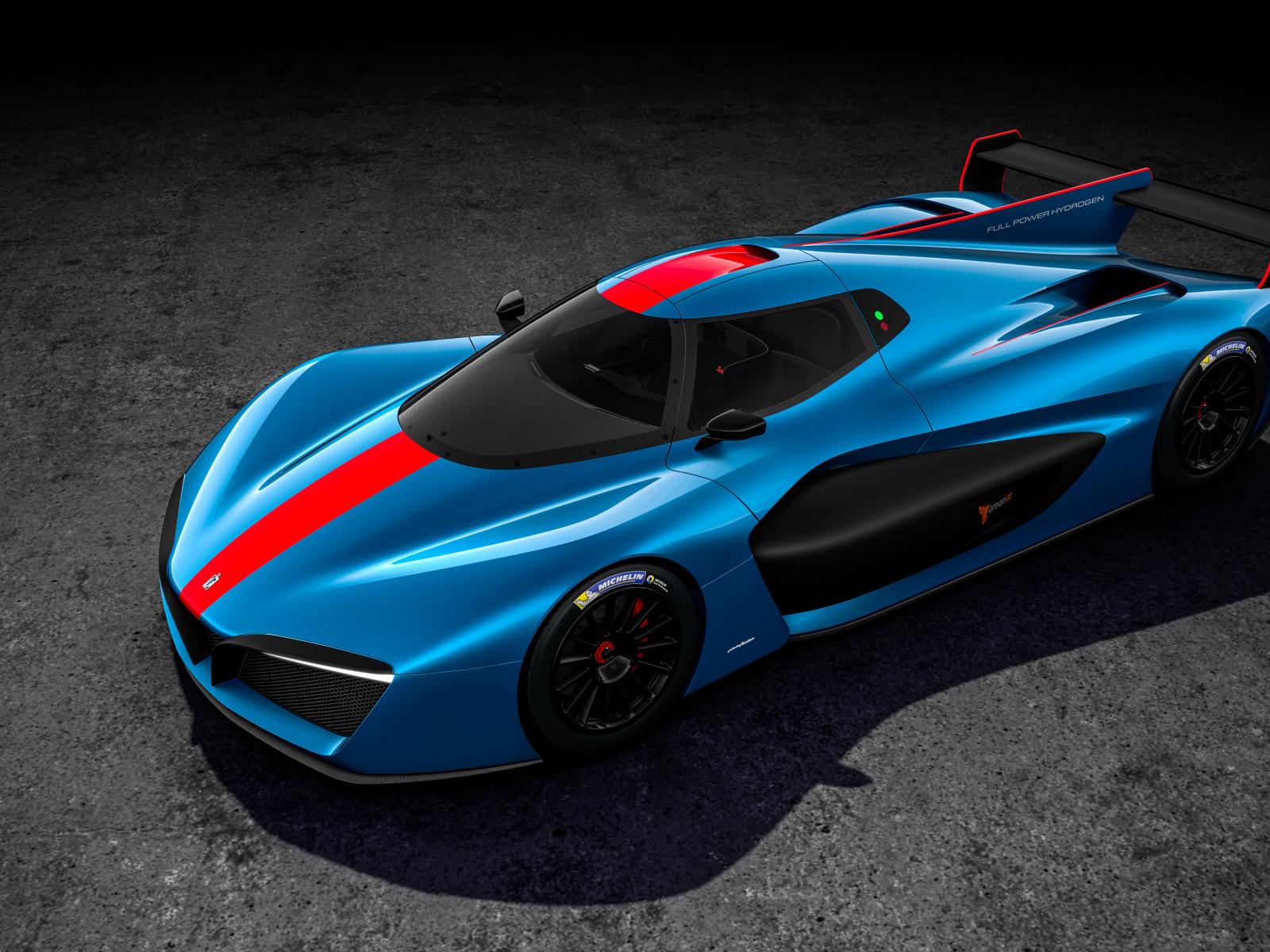Обои Голубой гоночный автомобиль Pininfarina H2 Speed Front 2018