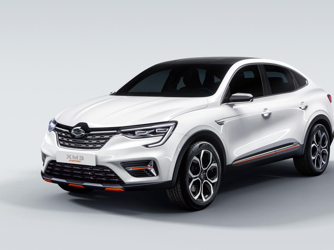 Обои Белый автомобиль Samsung XM3 Inspire 2019 года на сером фоне