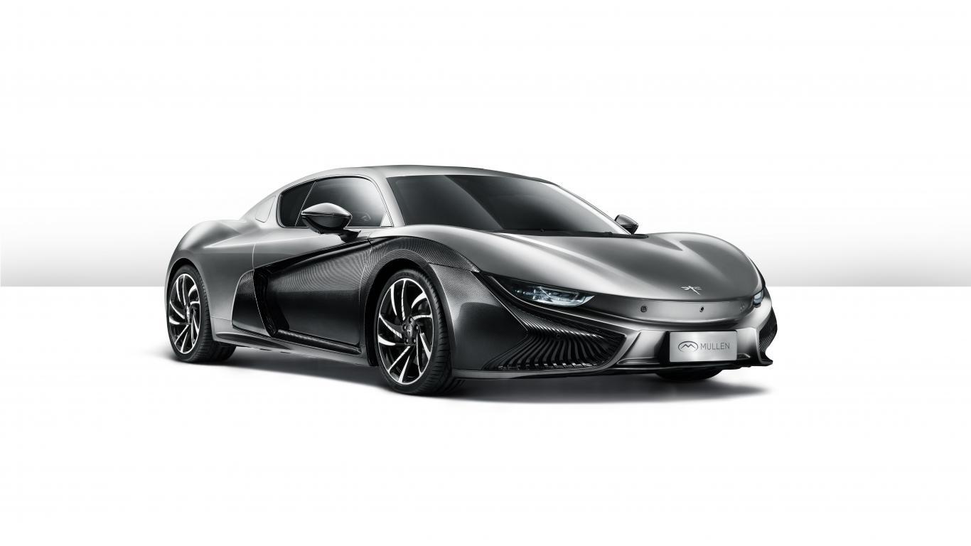 Обои Серебристый электрический автомобиль Qiantu K50 на белом фоне
