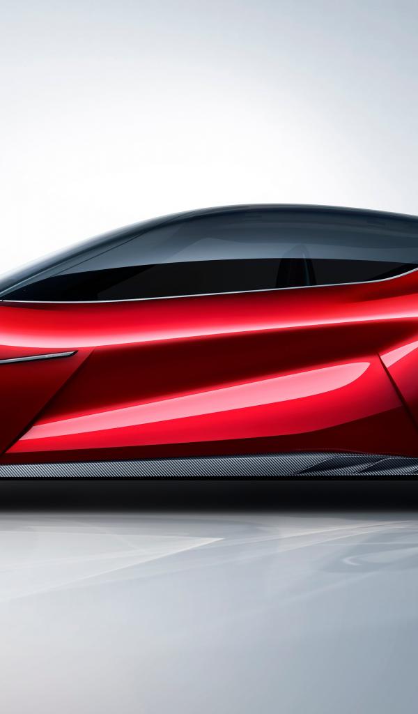 Обои Красный автомобиль BYD E-SEED GT 2019 года на сером фоне