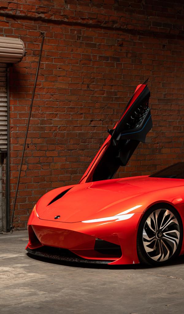 Обои Красный автомобиль Karma SC1 Vision Concept 2019 года с открытыми дверями