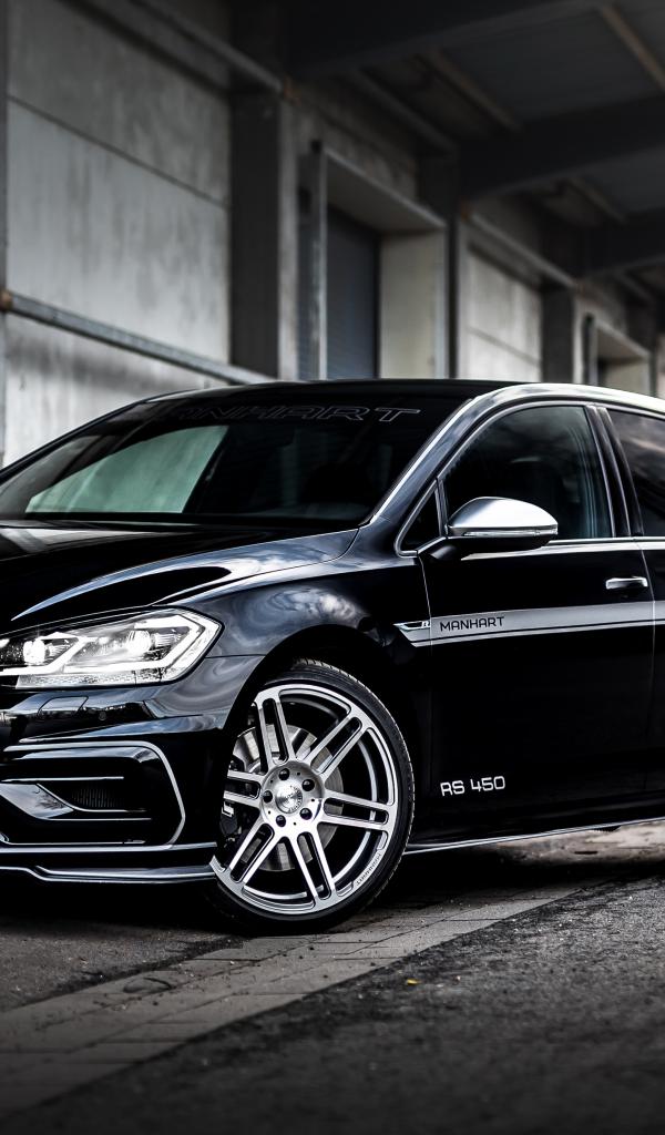 Обои Черный автомобиль Manhart RS 450, 2020 года у здания