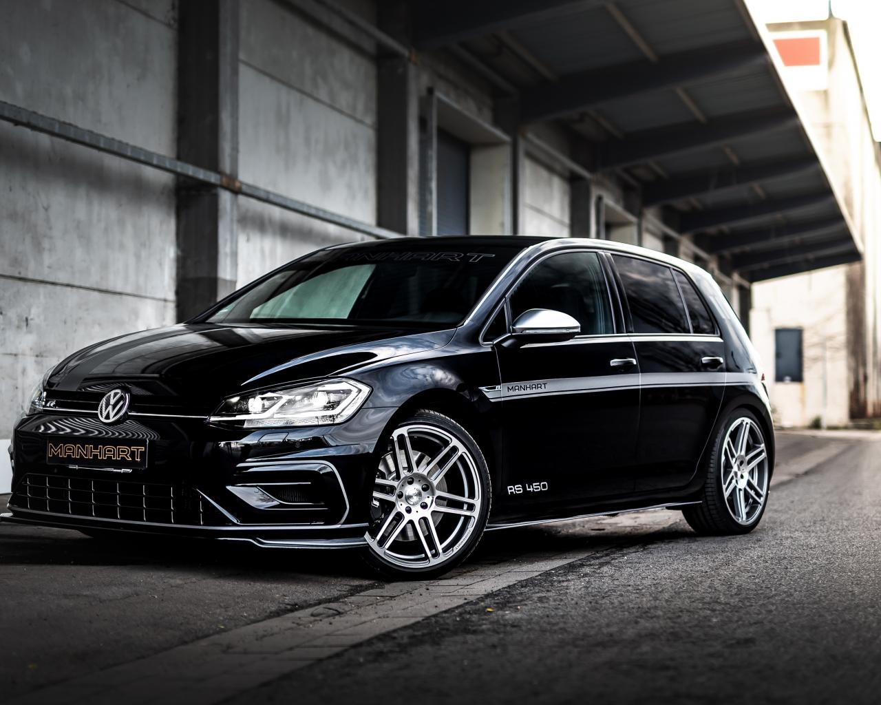 Обои Черный автомобиль Manhart RS 450, 2020 года у здания