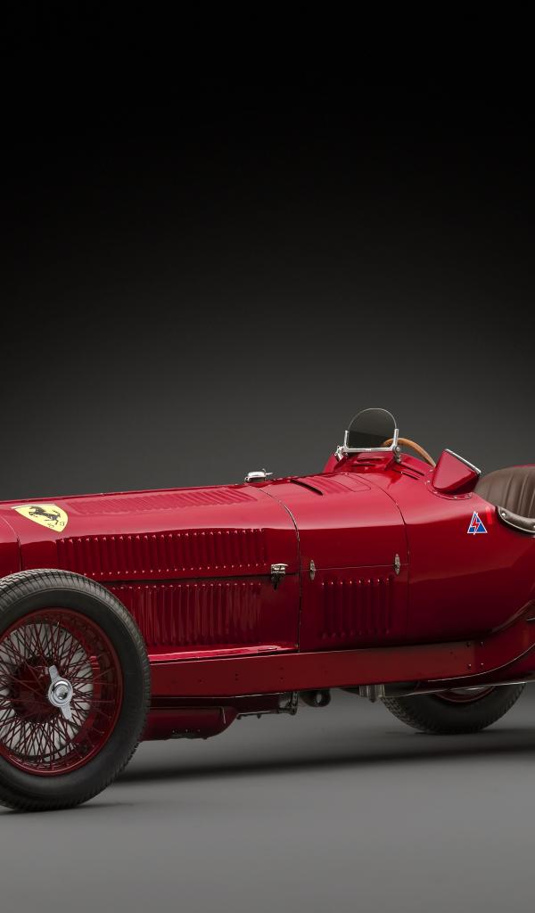 Обои Красный ретро автомобиль Alfa Romeo на сером фоне