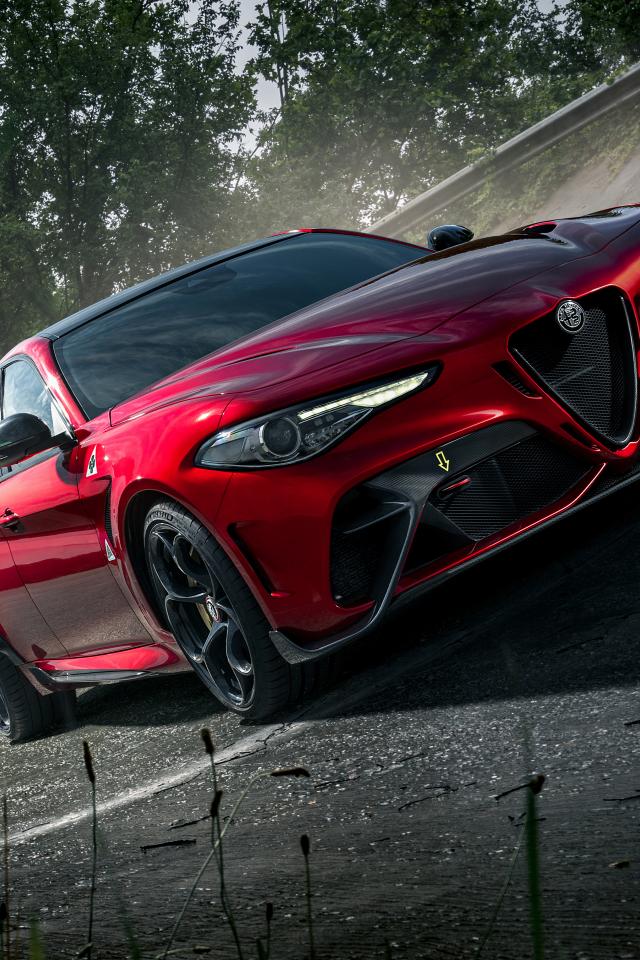 Обои Автомобиль Alfa Romeo Giulia GTAm, 2021 года красного цвета