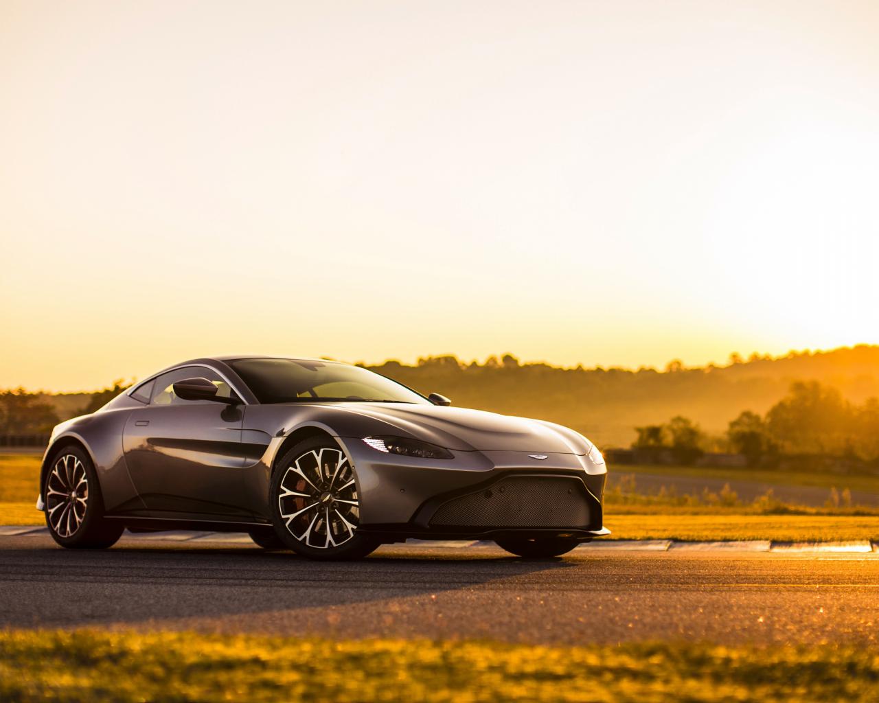 Обои Спортивный автомобиль Aston Martin Vantage, 2018 в лучах солнца