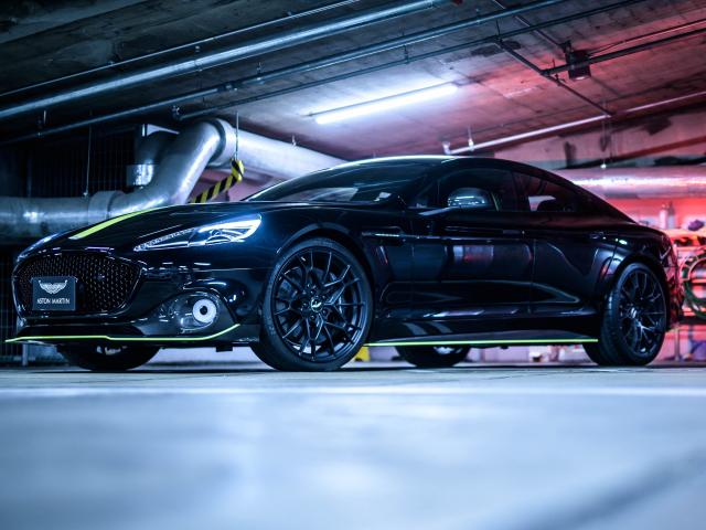 Обои Черный автомобиль Aston Martin Rapide AMR в гараже