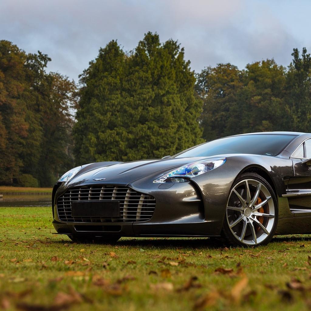 Обои Спортивный автомобиль Aston Martin one-77 стоит на газоне