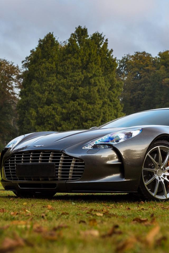 Обои Спортивный автомобиль Aston Martin one-77 стоит на газоне