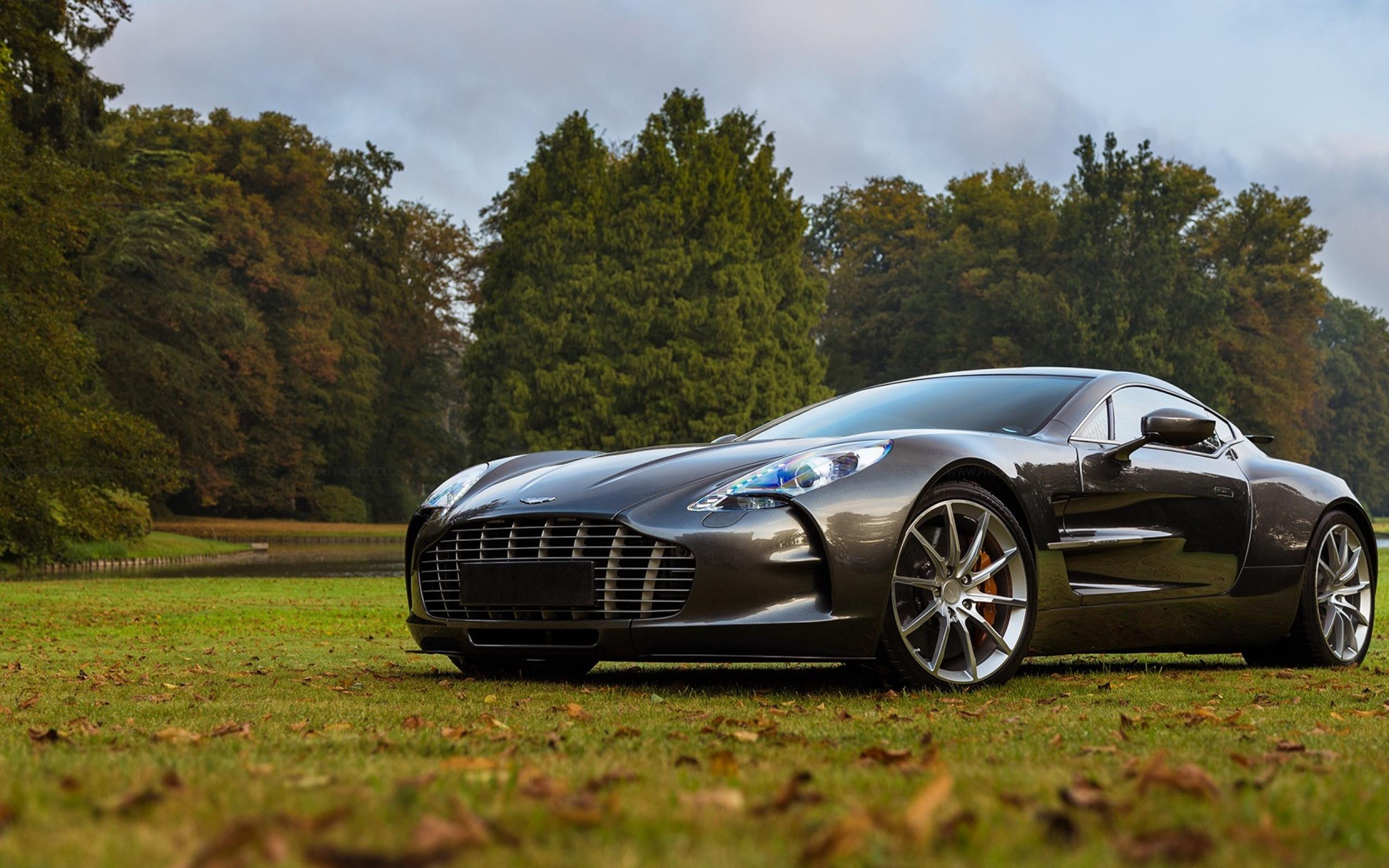 Обои Спортивный автомобиль Aston Martin one-77 стоит на газоне