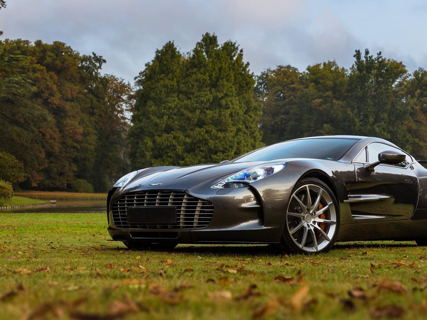 Обои Спортивный автомобиль Aston Martin one-77 стоит на газоне