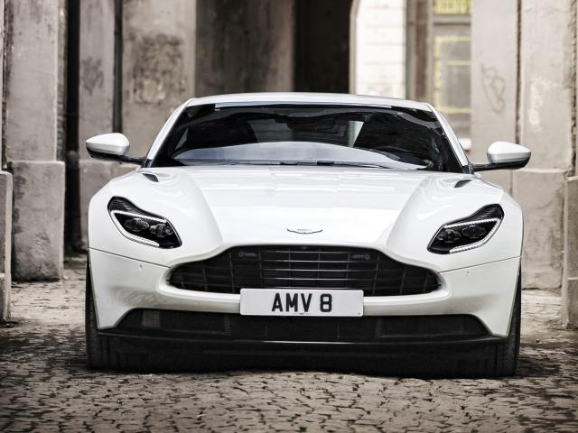 Обои Белый автомобиль Aston Martin DB11 V8 вид спереди