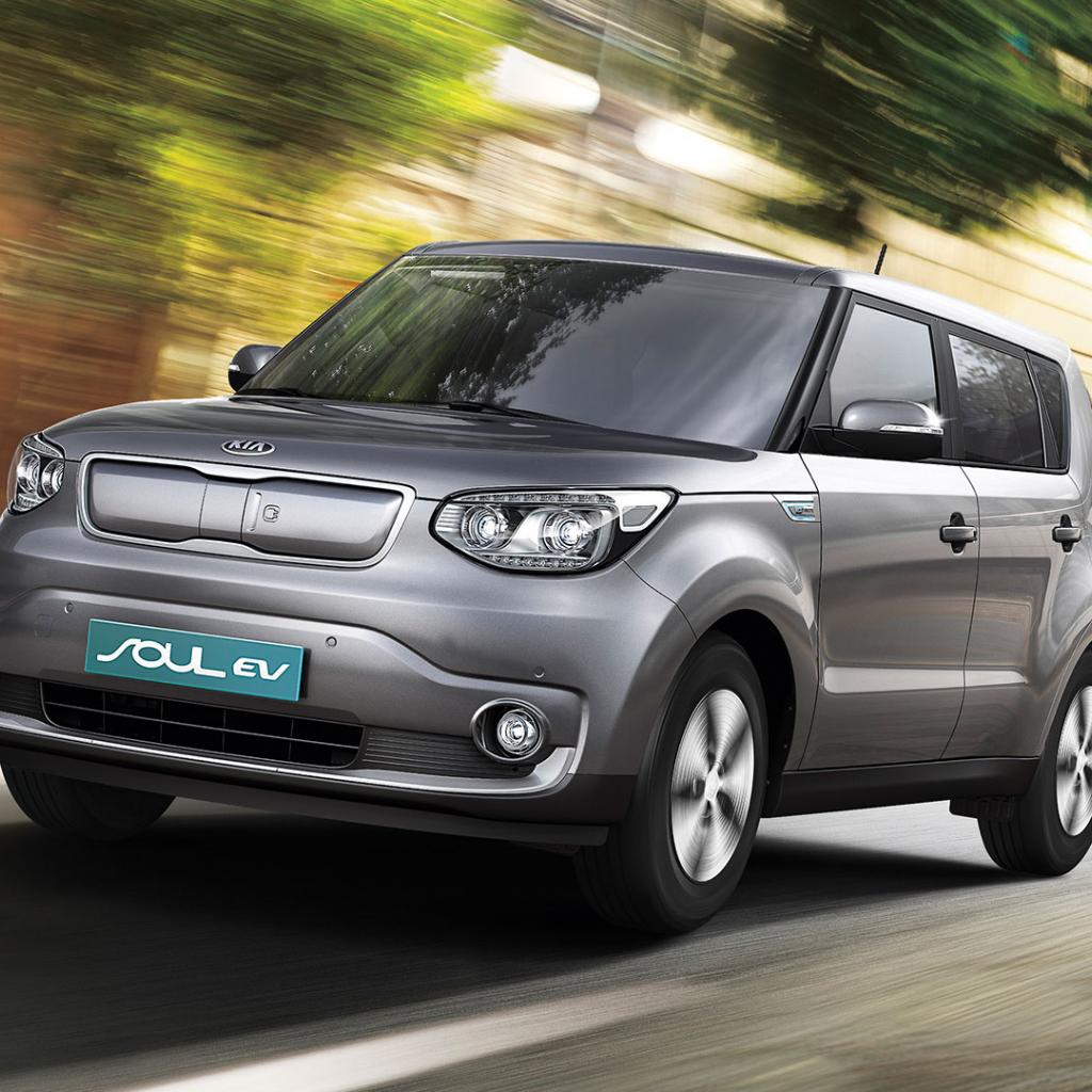 Обои Серебристый электромобиль Kia Soul EV в движении